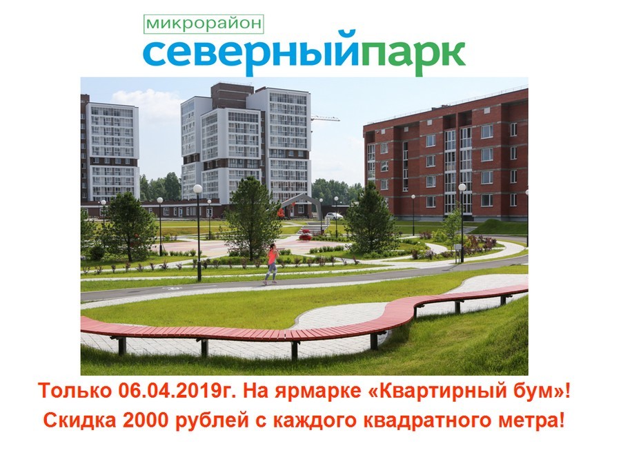 2019-04-02Хотите получить скидку при покупке квартиры в микрорайоне «Северный парк»? Приходите на ярмарку жилья «Квартирный бум» 06.04.2019г. в Дом ученых с 10-00 до 15-00. Посетите стенд ГК «Карьероуправление». Выберите квартиру из предложенного списка. Зарегистрируйте заявку на заключение договора купли-продажи у менеджера. И вы получите право на скидку в размере 2000 рублей с каждого квадратного метра общей площади выбранной квартиры. Подробно с условиями акции можно ознакомиться на сайте sever.gkkarier.ru или по телефонам 573-573, 75-03-57.